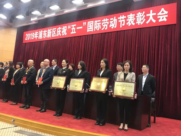 4月28日下午,浦东新区总工会在浦东新区行政中心举办了盛大隆重的“浦东职工庆祝五一表彰大会”。在此次表彰大会上,我司首获浦东新区“五一劳动奖状”荣誉称号,我司副总经理、党总支副书记陈琦同志代表公司上台领奖。