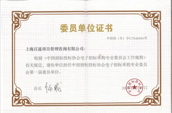 2019年7月17日,中国招标投标协会电子招标采购专业委员会成立大会暨第一次工作会议在北京召开,根据《中国招标投标协会电子招标采购专业委员会工作规程》,我司担任中招协电子招标采购专业委员会第一届委员单位。
