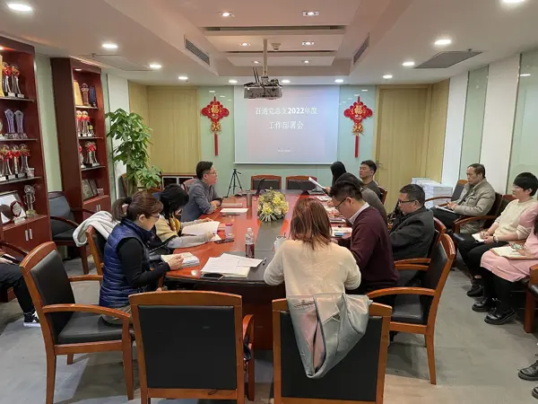 2022年2月28日下午,百通党总支委员会召开2022年度工作部署会,党总支书记、副总经理顾超同志主持,党总支及各党支部委员、各主要业务板块负责人等20人参会。会议通报了新区综合党委年度工作计划及对“百通党委”选举工作的安排指导;研究审议了公司年度党员发展计划、入党积极分子和入党申请人党内培养计划、党建联建工作计划、党团骨干凝聚力建设计划、迎接党的“二十大”党内活动事宜、红色阵地布置;着重强调了各业务板块进一步提高宣传工作质量和数量等多项工作。