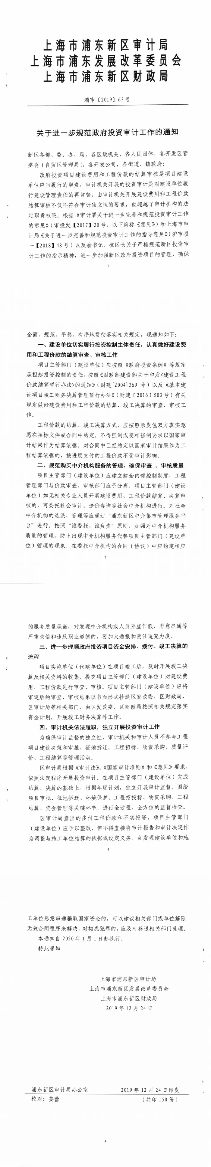 关于进一步规范政府投资审计工作的通知【浦审〔2019〕63号】
