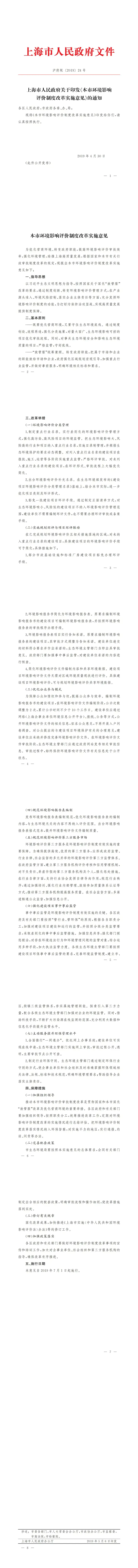 [市府] 关于印发《本市环境影响评价制度改革实施意见》的通知【沪府规〔2019〕24号】