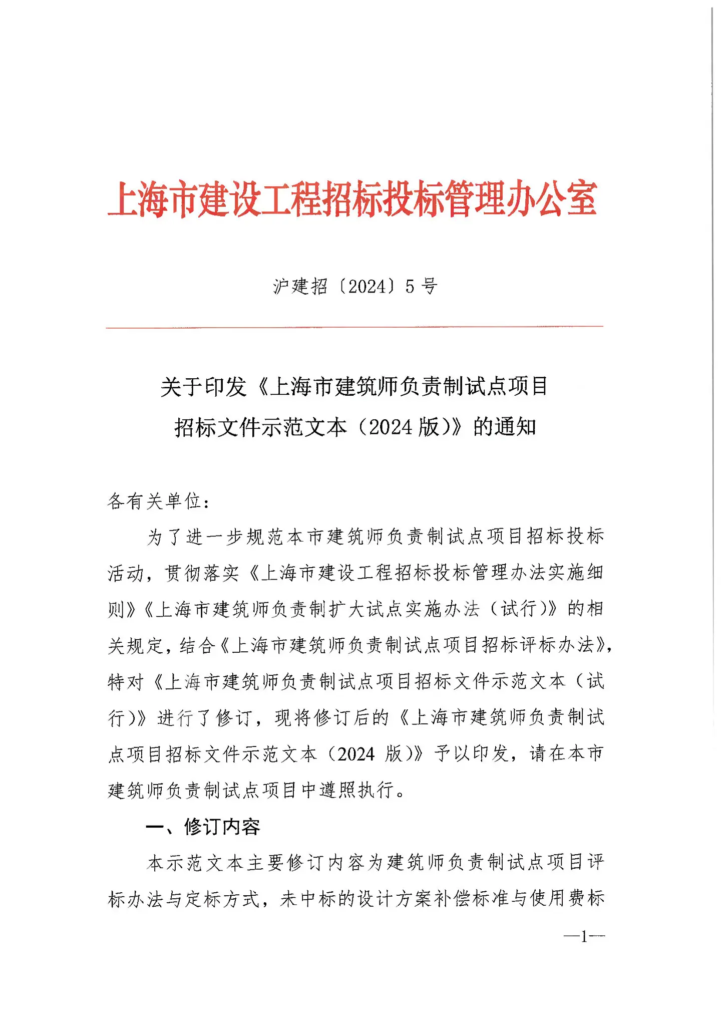 [关于印发《上海市建筑师负责制试点项目招标文件示范文本(2024版)》的通知(沪建招〔2024〕5号)]